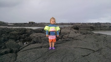 All ready to snorkel in the tidal pools… but preferred to stand on the rocks.