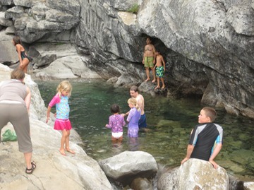 the whole group made it to the falls!! dad takes the girls for a really cold swim