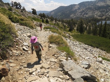 Koda grinding up the hot mountainside