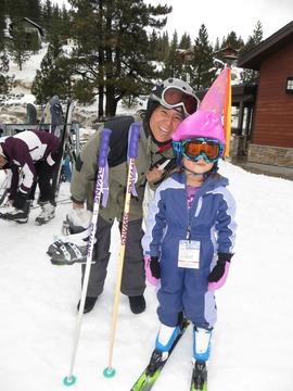mom finally comes off the ski bench