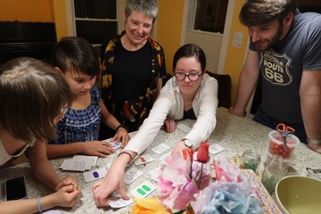 Denny, Abigail, and Joe showing the girls their Set skills